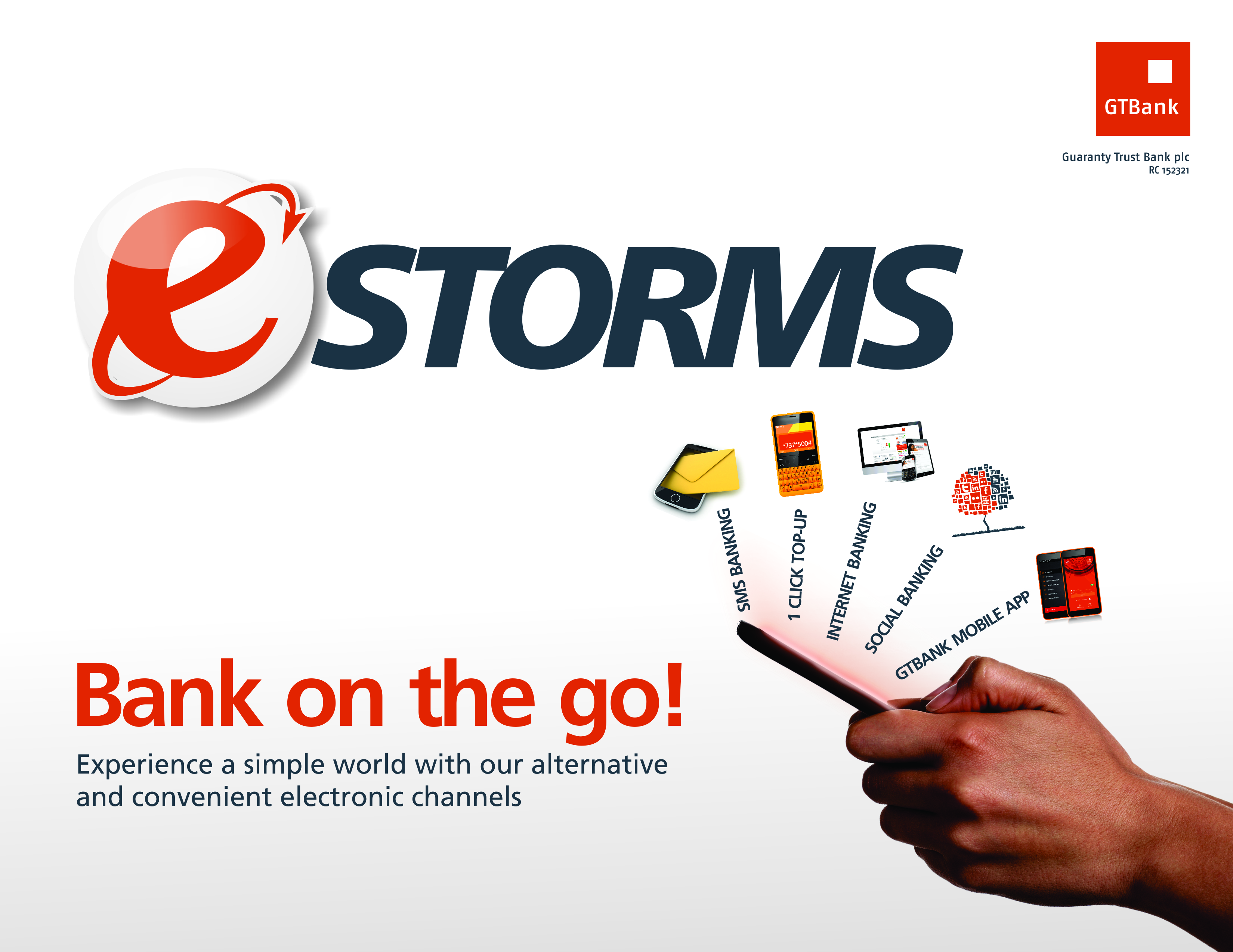 The GTBank E-storm is an e-channel awareness storm to engage, educate and convert as many customers as possible to adopt the bank’s alternative channels and migrate them successfully to these channels. These e-channels include: