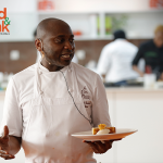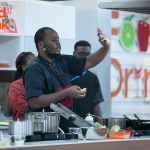 Popular Nigerian chef, Gbubemi ‘Chef Fregz’ Fregene cooked one of his favourite meals during his master class cooking session, Orange rosemary chicken and humoured the audience as he went along. During his cooking session he professed his undying love for Jollof rice and Amala saying “Jollof is the sword, Amala is the breast plate”.