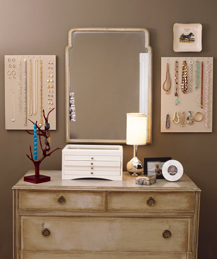 Beyond a flat screen TV hanging from the wall; also hang up your jewellery, or pretty cutting boards and trivets, to clear out valuable drawer space in the bedroom or kitchen.
