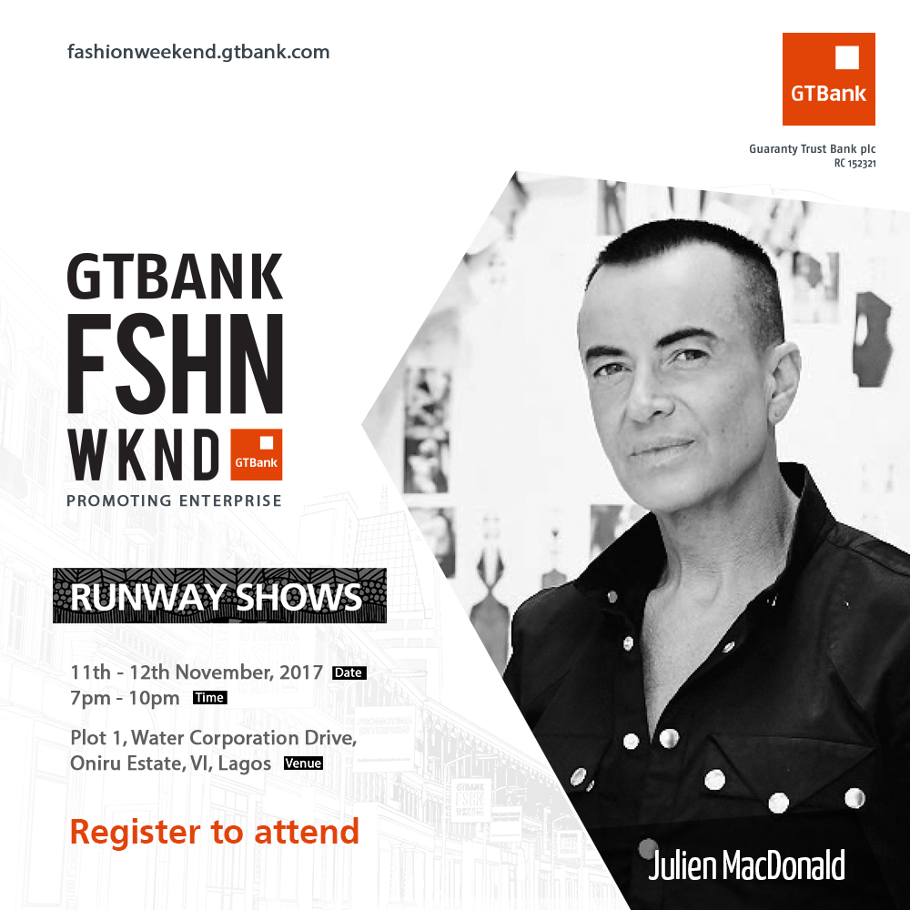 In 2016, Welsh designer, Julien MacDonald showcased his exquisite outfits at the first ever GTBank Fashion Weekend runway show. This year, the sophomore edition of the event, which is scheduled to hold on November 11 and 12, 2017, features twelve elegant designers, and Julien MacDonald is one of them.