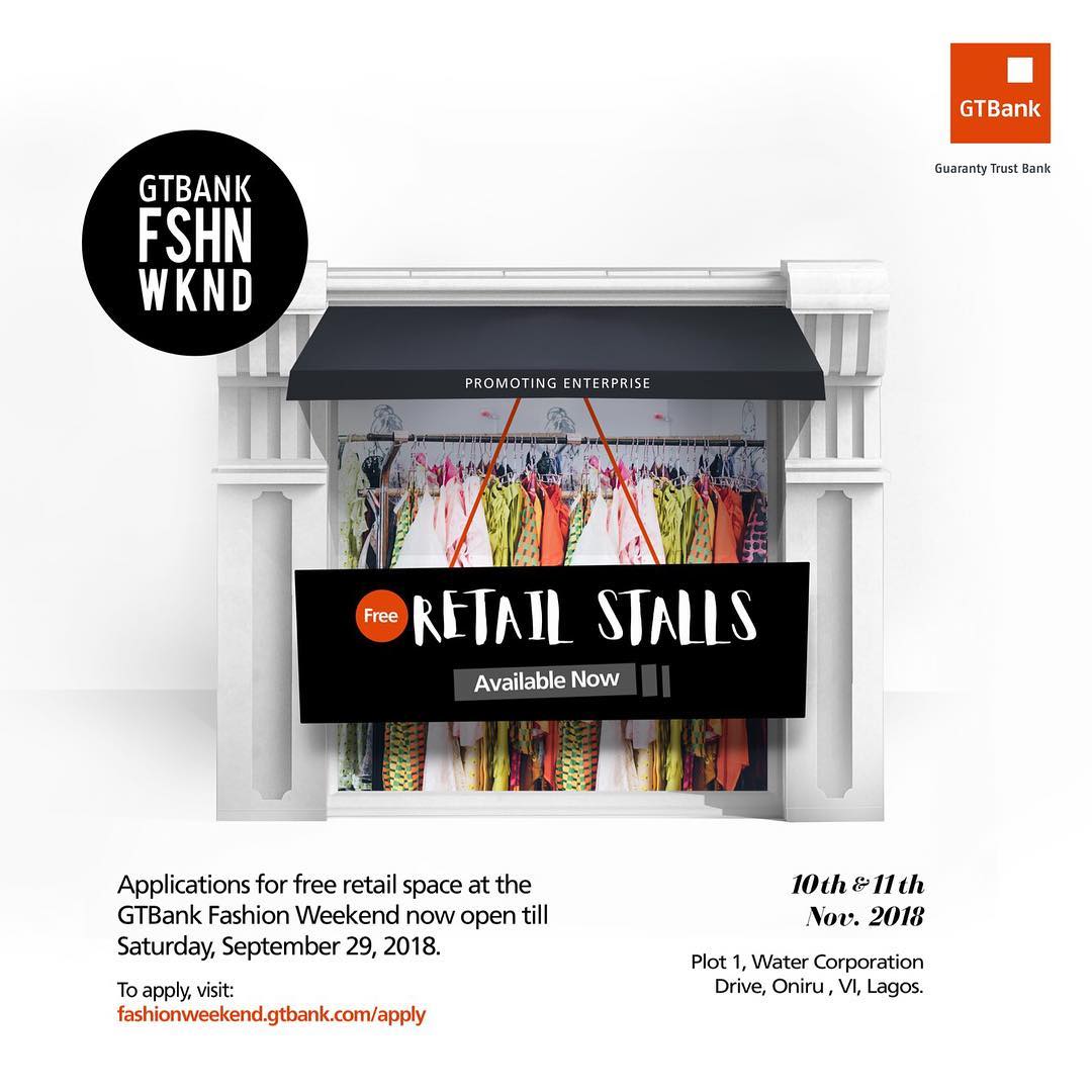The GTBank Fashion Weekend is here again and vendors registration for FREE retail stalls is ongoing.