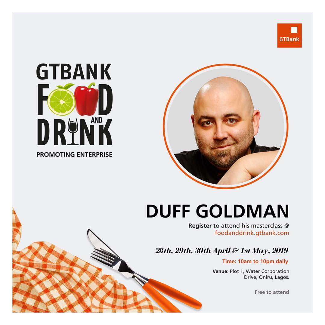 Duff will be at the GTBank Food and Drink Festival on Wednesday, May 1st, 2019, to lead the discussion on Acing your Cakes!
